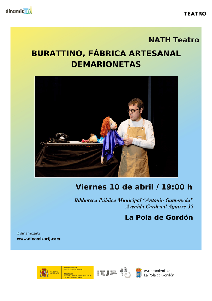 La Biblioteca Pública Municipal “Antonio Gamoneda” de La Pola de Gordón acogerá el próximo viernes 10 de abril, a las 19:00 horas, el espectáculo “Burattino, Fábrica Artesanal de Marionetas”, de la compañía NATH Teatro. La entrada será libre y gratuita hasta completar aforo.