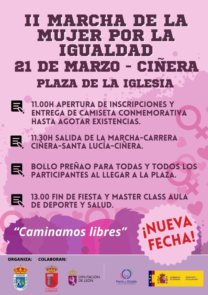Bajo el lema "caminamos libres" os esperamos en la plaza de Ciñera, y si te animas puedes echar a correr.